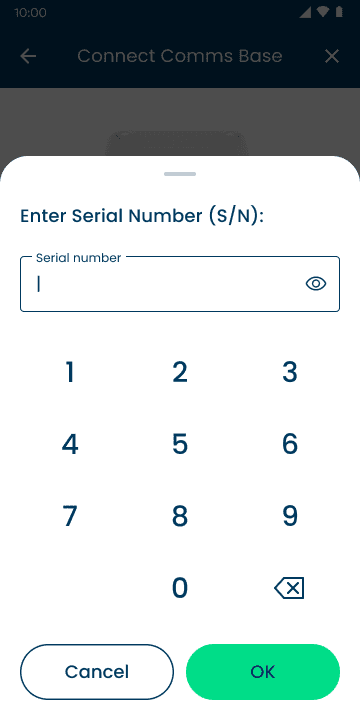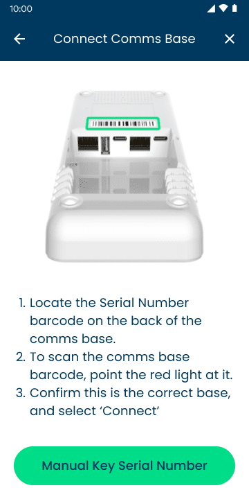 - To connect to base ethernet you will need to locate the Serial Number barcode on the back of the comms base.